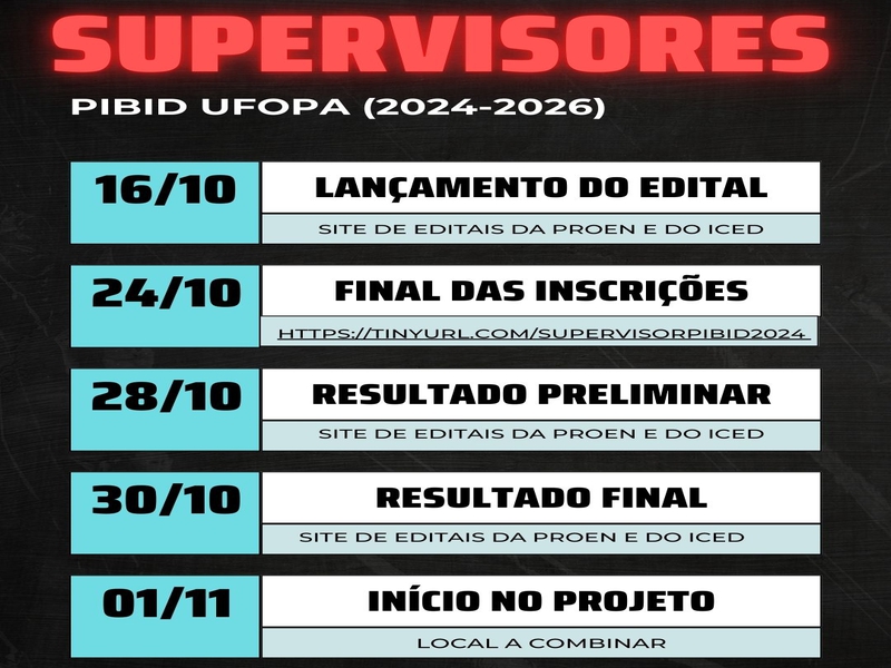 Processo para Seleção de Professor Supervisor de Iniciação a docência-Pibid Ufopa (2024-2026)