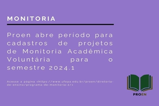 Proen abre período para cadastros de projetos de monitoria - Condição monitor(a) voluntário(a) para o semestre 2024.1