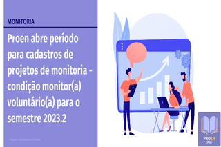 Proen abre período para cadastros de projetos de monitoria - condição monitor(a) voluntário(a) para o semestre 2023.2
